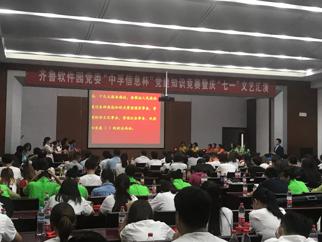 为庆祝中国共产党创建97周年,深入推进党的十九大精神学习,2018年6月30日下午,z6com时凯集团信息党总支响应齐鲁软件园党委号召,组织并参与了“z6com时凯集团信息杯”党建知识竞赛暨庆“七一”文艺汇演活动,为党的97岁华诞献礼。园区企业联合党委下属企业党组织成员、党建指导员等200余人参加了此次活动。
